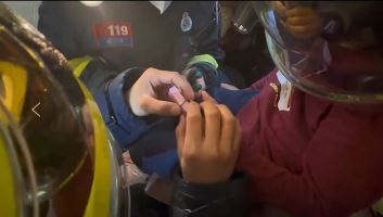 视频:消防人员正在为小男孩进行救助。